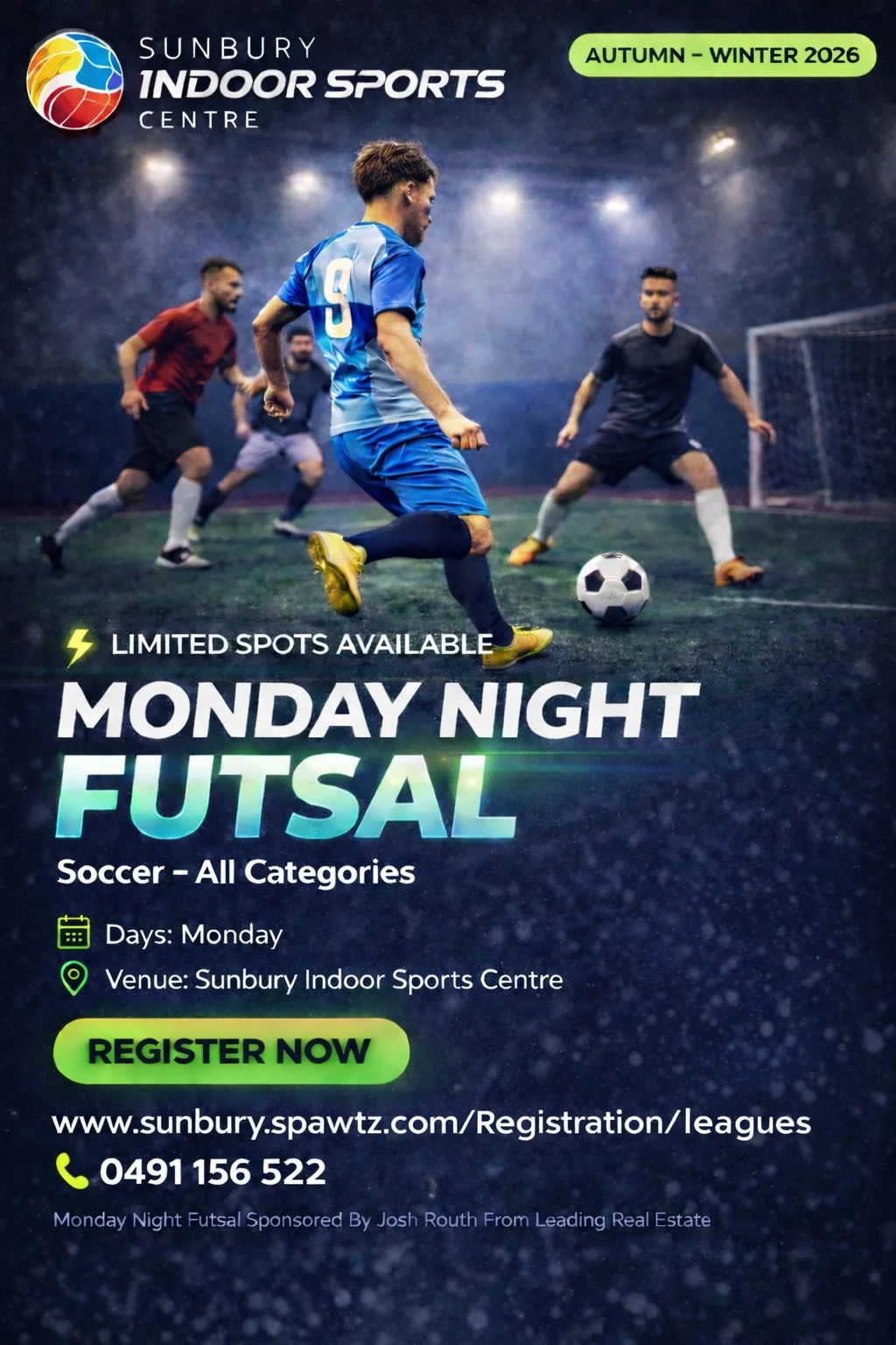 * Players play at their own risk. Sunbury indoor sports accepts no liability for any injury that a player might receive in the course of a game.