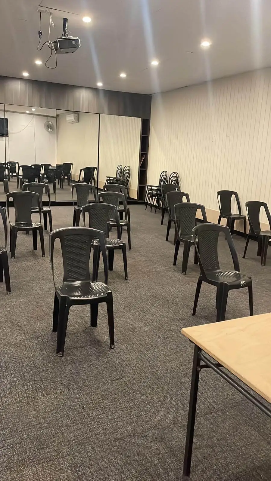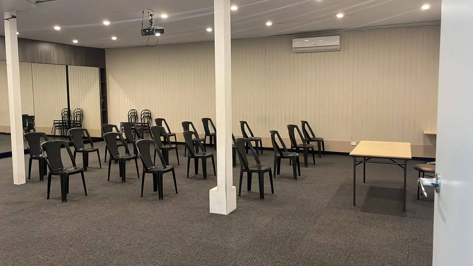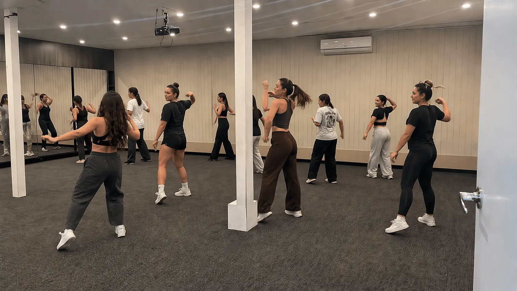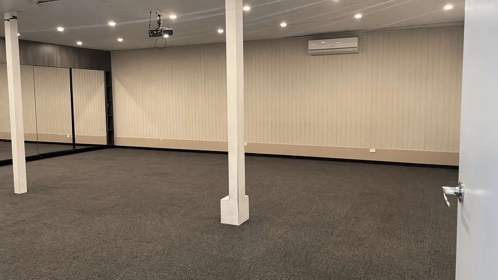 Enjoy a comfortable indoor setup with ample space, mirrors, and climate control—ideal for consistent training without weather interruptions.